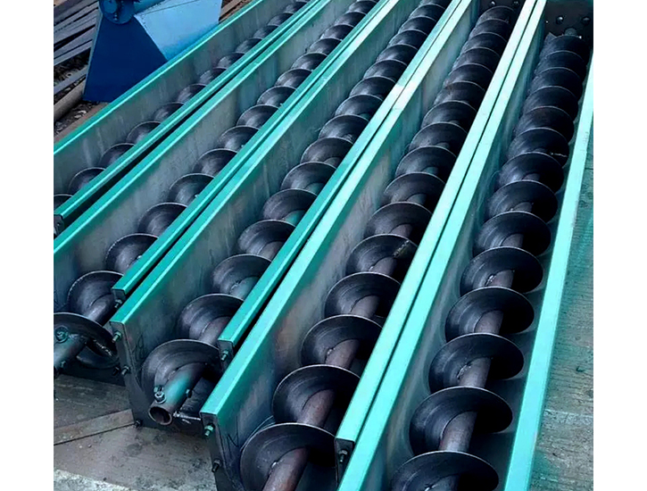 螺旋輸送機的頭部及尾部軸承移至殼外,吊軸承采用滑動軸承,設有防塵密封裝置,軸瓦一般采用粉末冶金,輸送水泥采用毛氈軸瓦,吊軸和螺旋采用滑塊連接,拆卸螺旋時,不用移動驅動裝置,拆卸吊軸承時不用移動螺旋軸,不拆卸蓋板可以潤滑吊軸承。整體(ti) 可靠性高,壽命長,適應性強,安裝維修方便。