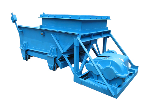 K型往複式給料機是由機架、底板(給料槽)傳(chuan) 動平台、漏鬥閘門、托輥等組成。其傳(chuan) 動原理:當電動機開動後,經彈性聯軸器、減速器、曲柄連軒機構拖動傾(qing) 斜的底板在插輥上作直線往複運動,將煤均勻地卸到運輸機械或其它篩選設備上。該機設有帶漏鬥、帶調節閥門和不帶漏鬥、不帶調節閥門兩(liang) 種形式。