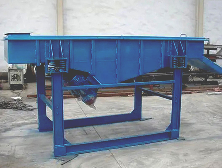 當縱向安裝在篩體(ti) 上的兩(liang) 台振動電機相對轉動時,兩(liang) 台振動電機兩(liang) 端的偏心塊便產(chan) 生額定激振力,其產(chan) 生在橫向的激振力相互抵消,其縱向的激振力通過傳(chuan) 振體(ti) 傳(chuan) 遞到整個(ge) 篩麵上,從(cong) 而使篩麵上的物料受其激振力而在篩網麵上向出料口方向跳躍運動,小於(yu) 篩孔的物料通過篩孔落到下層,大於(yu) 篩孔的物料經連續跳躍後,經出料口流出,由於(yu)